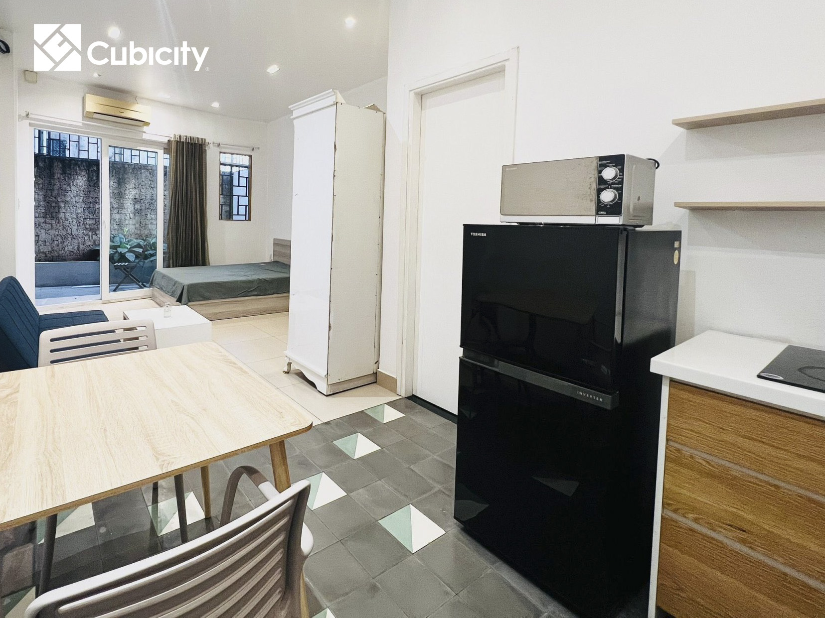 Cubicity là chuỗi căn hộ dịch vụ (CHDV) trung cấp hàng đầu tại TP.HCM. CHDV studio này là sự kết hợp hoàn hảo giữa yên bình và tiện lợi. Nằm ở góc một con phố yên tĩnh, bạn có thể tận hưởng bầu không khí yên bình khi vẫn ở trung tâm thành phố. CH được trang bị đầy đủ nội thất, vì vậy bạn không cần phải lo lắng về việc mang theo bất cứ thứ gì bên mình. Cho dù bạn là sinh viên hay người đi làm, căn hộ studio ấm cúng này là nơi lý tưởng cho bất kỳ ai đang tìm kiếm một không gian sống thoải mái ở trung tâm.